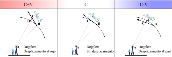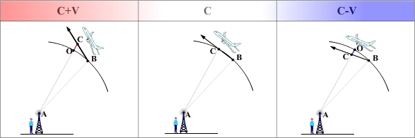 Por lo tanto, la velocidad de la señal que se dirige al avión en la figura de la derecha será = c-v.