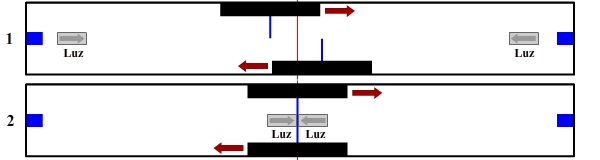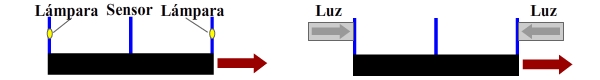 "Las luces deben ser emitidas de tal manera que lleguen al eje de simetría exactamente cuando los sensores alcancen dicho eje.