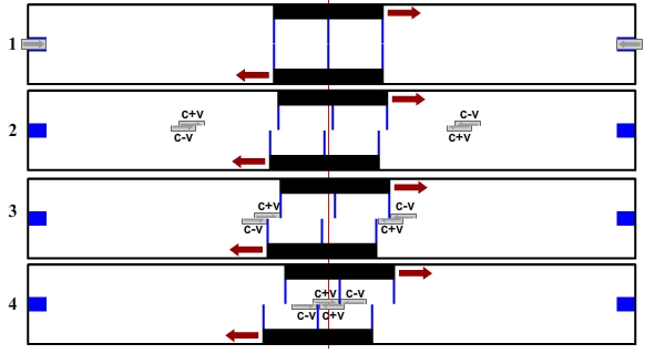 En ambos extremos del dispositivo hay fuentes de luz. El dispositivo funciona según el principio de simetría.