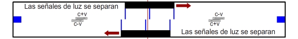 2- Las ondas electromagnéticas que componen la luz forman los grupos de señales (c+v) y (c-v) según el objetivo de llegada.