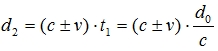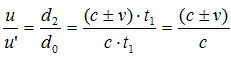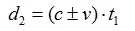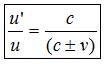 (c±v) representa la velocidad de la señal en dirección al observador en el sistema de referencia del avión. |