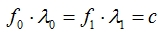 Из-за равенства между частотами и длинами волн на стороне приёмника и передатчика,