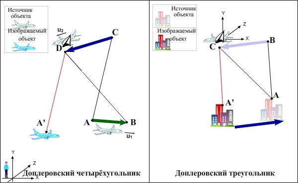 Для обоих наблюдателей формируются Доплеровские Треугольники