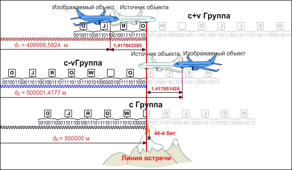 | Положение Объекта Изображения нижнего самолета | d2 = d0.c/(c-v) | 500001,4177 | м |