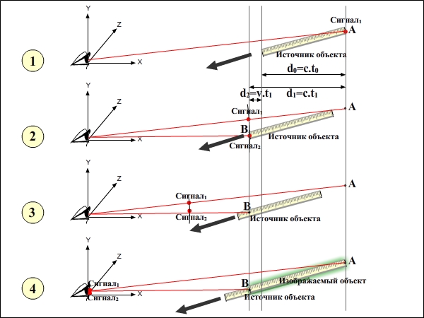 точку B и наблюдателя прямой линией. Сигнал 2 будет следовать по