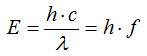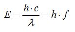E: энергия фотона, h: постоянная Планка, c: скорость света, m: длина волны фотона, f: частота волны