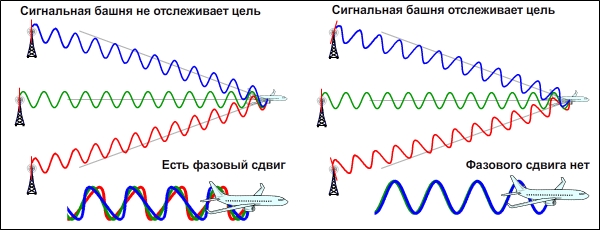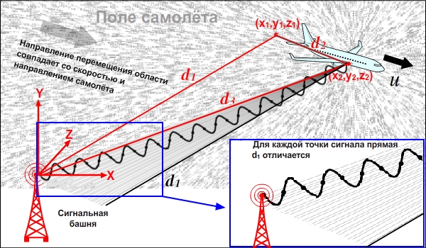 сигналы формируют "Путь Сигнала" между башней и самолетом.