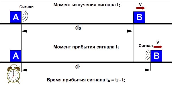 крайне прост. Мы отправляем сигнал из неподвижной системы отсчета в