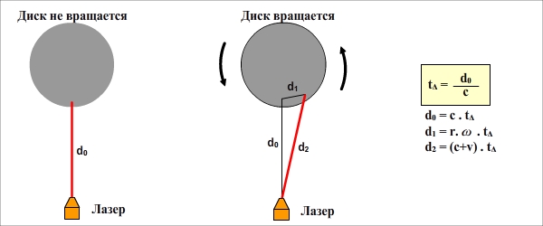 лазерным источником вращающегося диска. Результаты фиксируются путем