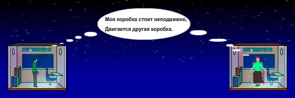 | ПРАВИЛО: Рассмотрим две системы отсчета, движущиеся равномерно и прямолинейно относительно друг друга. Каждая из этих систем отсчета может утверждать следующее: "Моя система отсчета является неподвижной. Движется другая система отсчета." |