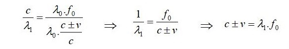 Неизвестным моментом выше является где происходит изменение длины волны и цепочка событий, развивающаяся в зависимости от этого. В Доплеровском смещении изменение длины волны происходит в момент излучения сигнала. Изменение длины волны сигнала вызывает изменение скорости излучённого сигнала. В результате, согласно собственной системе отсчёта Источника, скорость сигнала, отправленного движущемуся Целевому Объекту, в соответствии с механикой скорости волны, становится отличной от скорости света [4]: