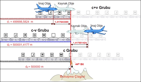 | Alttaki uçağın İmaj Objesinin konumu | d2 = d0.c/(c-v) | 500001,4177 | m |