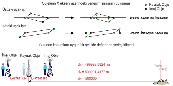 yerlerini ve uçakların İmaj Objelerinin yerini bildiğimize göre
