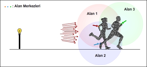 sinyallerin gözlemciye vardığı durum gösteriliyor. Gözlemci uçağın İmaj