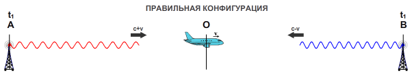 затем сигналы посылались от самолёта к башням A и B,