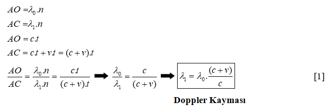 gönderilerek iki durum karşılaştırılmış; Doppler Kaymasına bağlı dalga