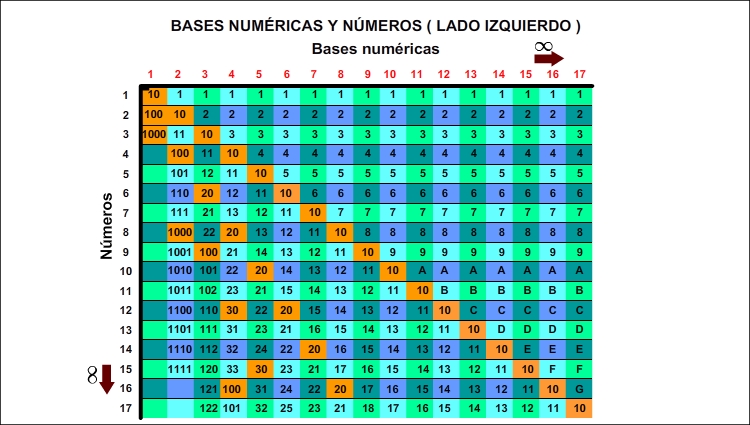 La tabla siguiente muestra dos representaciones distintas de las Bases Numéricas del Lado Derecho: