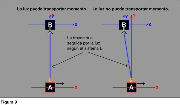 sistema de referencia de B, si la luz transporta momento, sigue una