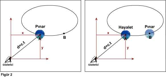 göre d = c . t mesafesinden yola çıkmış ise, gözlemci hayaleti