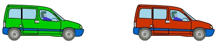 tanto, el coche verde viene detrás a una velocidad constante. El coche verde