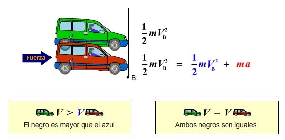 Escribimos las energías cinéticas de ambos coches junto a ellos.