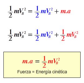 Escribiendo el equivalente en energía cinética del valor de la fuerza m.a,