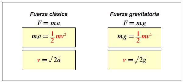 equivalente energético de la aceleración. Las igualdades de abajo muestran cómo se calcula la