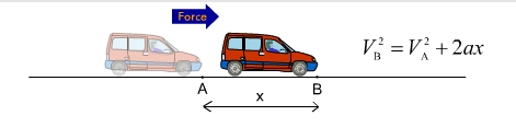 una fuerza desde el punto A hasta el punto B. Sea la velocidad del coche en el punto A