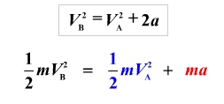 igualdad en una ecuación de energía (en la ecuación, m: la masa del coche).