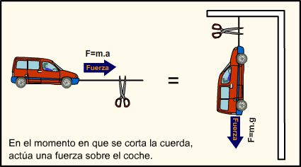 Sin embargo, en el momento en que se corta la cuerda, hay una fuerza que actúa