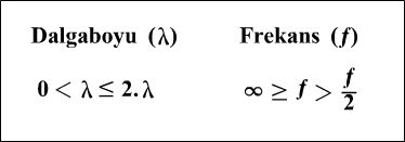Dalgaboyu ve frekans hesaplarının nasıl yapılacağı aşağıda gösterilmiştir. Frekans ve dalga boyları hesapları yalnızca bu eşitlikler temel alınarak yapılabilir.
